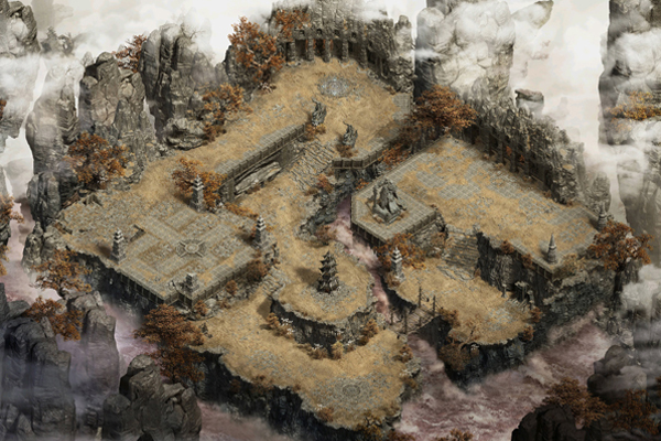 位于一道悬崖之上,分为三层,仿佛建在天上一般,云层都在其下。问心梯接引过客前往西天的僧侣人,拿着一盏油灯,实际为接引掌灯僧侣人,传说其法力无边能照亮世间险恶,能驱散世间黑暗。若没有非凡之姿,即使上船,也无法过问心梯。