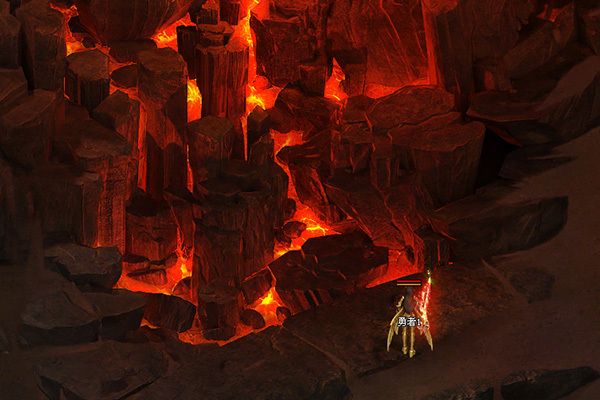 山腰处充斥着红色的火焰,道路交错,怪石嶙峋,各种炎枭山鬼漫步其中。