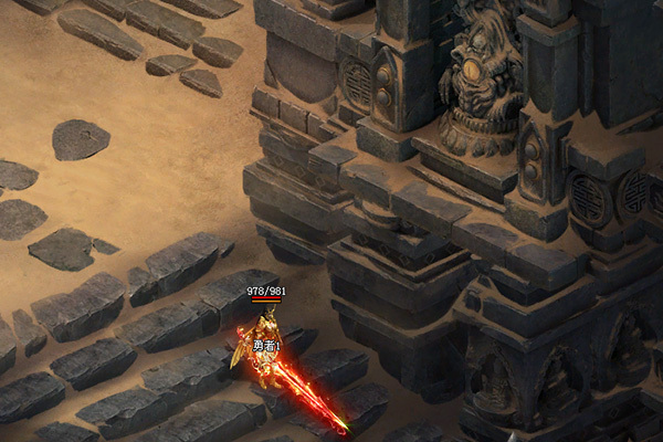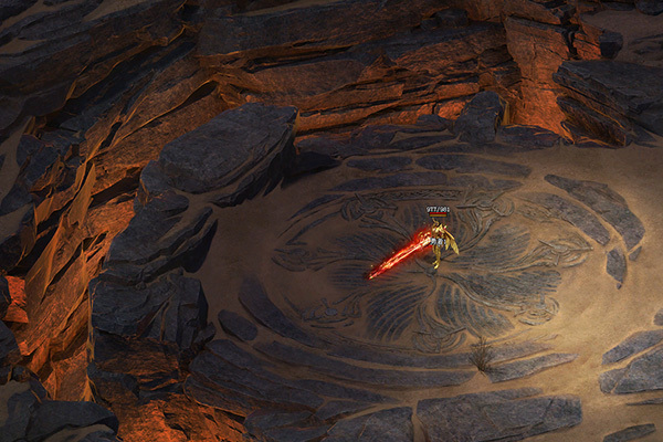 火焰山山脚还未真正进入火焰山领域,只有干涸开裂的大地,枯死的老树,枯黄的草。炎奴在这里搭建了简易破烂的棚子和简陋的祭坛作为他们进山前的休息所。不断有燃烧着的怪物从山上跑下来。