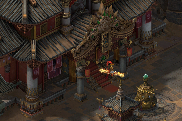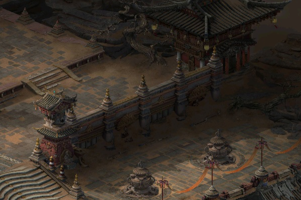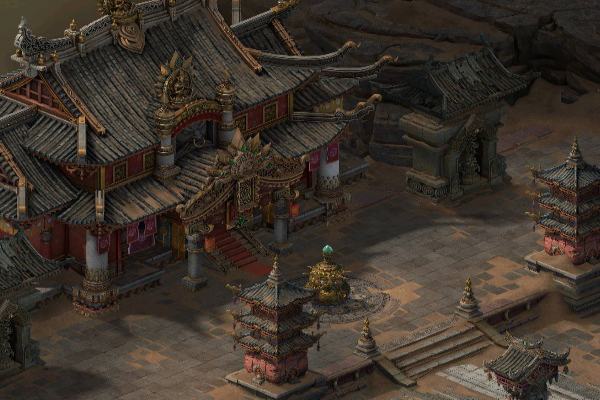 仿照大雷音寺所建,十足黄金的解剑台,四大天王在此守护,命来者解除武器。