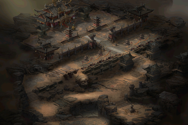 小雷音寺仿照大雷音寺而建,寺前有黄金台、接引桥等等,寺内金碧辉煌,却处处透着邪气,中间最大的如来佛祖就是黄眉大王变化。