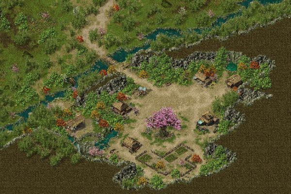 民房主要集中区域,此处为木质单层尖顶房屋,中心是一颗五百年的金色杏树,此处有仓库、民房、药店、杂货铺、铁匠店、书店、鸡圈、服装店、肉铺等建筑物。