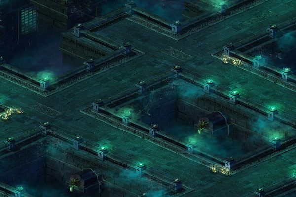 从入口到前墓殿之间的广阔区域,曲折婉转的狭窄走廊,两侧点着幽暗的烛台,闪烁着诡异的绿色光芒。