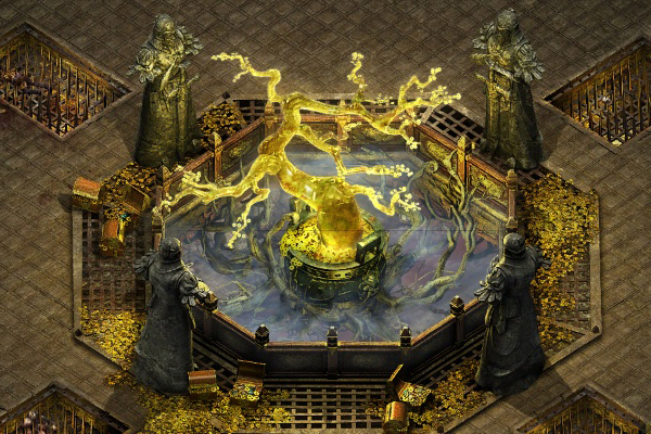 藏宝阁中珍藏着神族伟大成就的书册,入口位于宝藏谷,但藏宝阁的位置却不在宝藏谷中,而是位于昆仑山圣台。