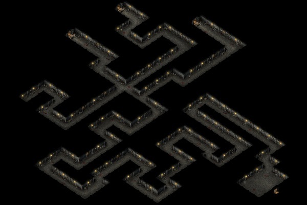 镇魔禁地修建于深层地下,终岁不见天日,入口皆有镇魔兽雕像,以防魔物逃脱。在风水位上还设立有镇魔柱,可不断消耗天魔的生命。