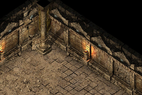 阵中灯火通明,每隔几步都会出现方形石柱,石柱上燃烧着长年不灭的火焰。墙上每隔几步就雕刻着奇禽异兽,上方更镂刻着奇异花纹,可以沟通天地的能量。