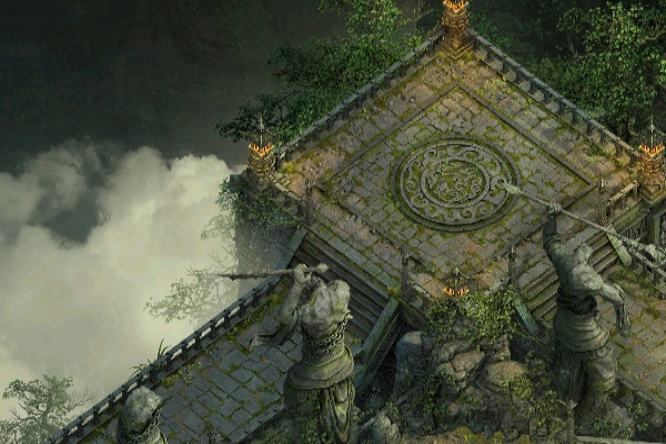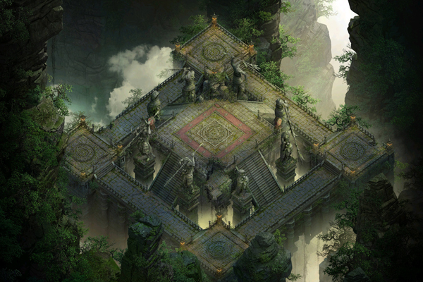 四周群山高耸,点将台坐落在群山隐秘的腹内。中央是个大平台,四周有一圈人形通道,四个角落里各有传送阵法。