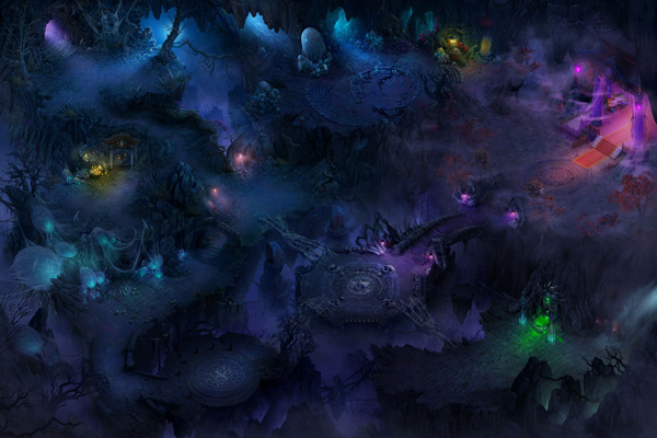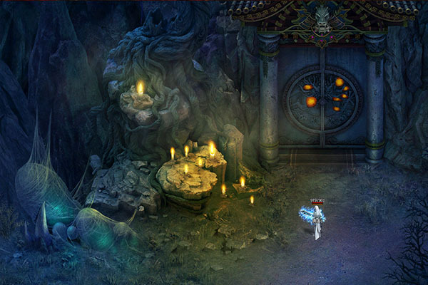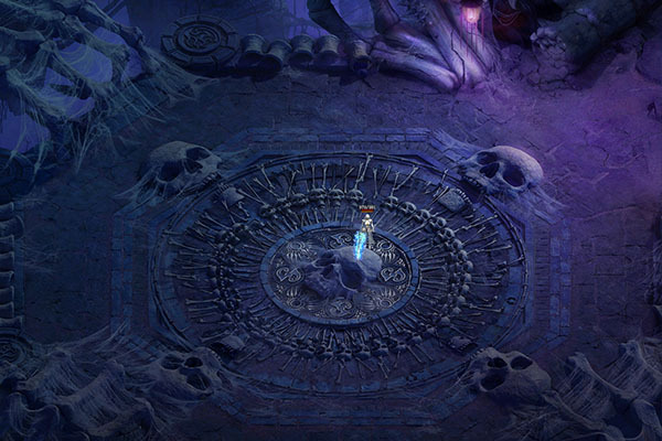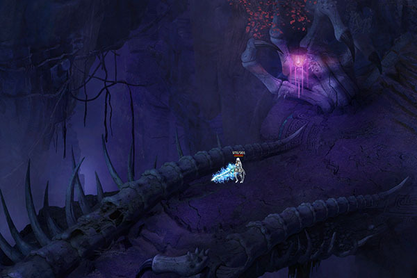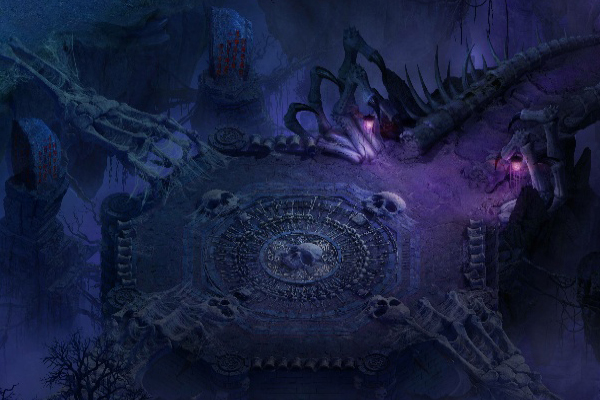 在闯过赤魔骷髅和将军骷髅的围攻,便会来到白骨洞的核心区域。这里有白骨夫人的王座,由无数的人族骷髅做搭建,极其邪恶与恐怖。