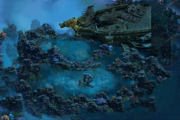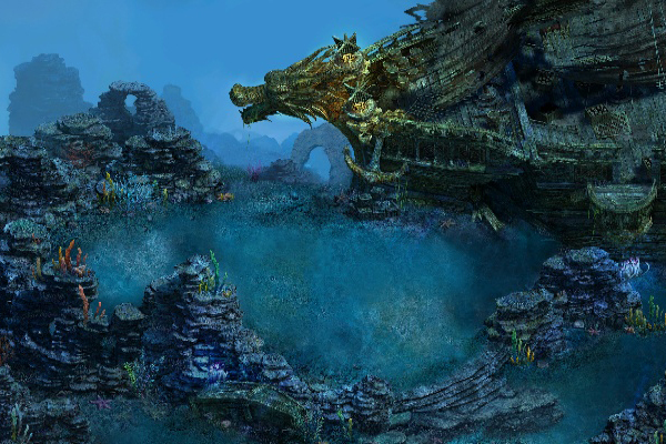 位于深海海心的一块悬浮之地,主要地表为海底礁石,四面有水草等水生生物,海底掩埋了无数沉船,还有深处无穷无尽的宝藏。