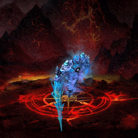 阿加雷斯有类人般的外形和泛着蓝水晶光泽般的皮肤,但它在体型上看起来只是比人族高大一些,身披盔甲,手持寒冰剑。身上有铁和岩石做的铠甲,没有双腿,下身是四根锁链。身体是蓝色的灵体状态。