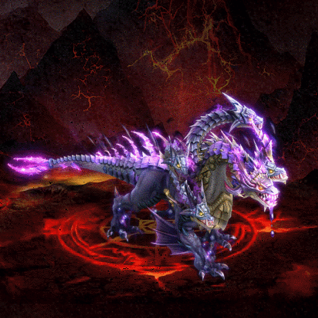 五个凶狠龙头龇牙咧嘴,紫色粘液从口中滴落,弯曲尖锐的犀牛角挺立在中间龙头之上,浑身遍布坚硬鳞片,胸前和肩膀处有金色护甲,脊背上有数个锐利尖角,四足后有翼,状似蝎子的尾巴左右摇摆。