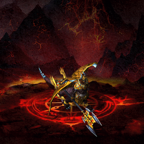 斯芬克斯人面兽身,背后有双金色鹰翼,手持双刃大斧,头顶公牛头盔,面目凶恶。肩膀处有埃及法老风格肩甲,上身是成年男子体型,赤裸的皮肤呈现灰紫色。腰间是金色太阳金带,下身是狮子状兽形。