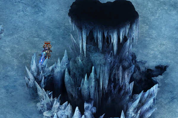 位于冰洞靠内的核心位置,碎小冰凌冰柱较少,有人为建筑痕迹。这里可以通往冰洞深处,里面隐藏着冰雪巨人的冰原宝藏。