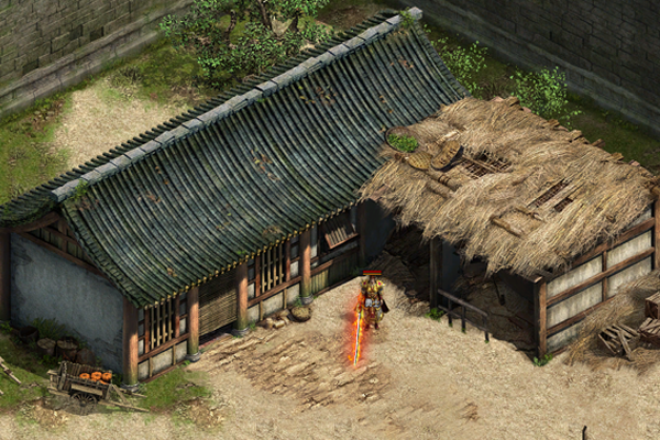 有两只金色镇魔神兽,墙壁上挂有当年诛杀的魔物首级,柱子亦有魔牙装饰,角落散布着不少骷髅和魔首。