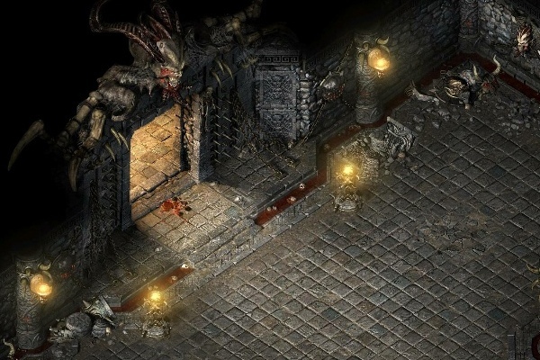 门口有两只金色镇魔神兽,墙壁上挂有当年诛杀的魔物首级,柱子亦有魔牙装饰,角落散布着不少骷髅和魔首。