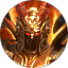 蚩尤身材魁梧,肩上飘扬蓝丝带,上身裸露,下身穿着战甲,手持一柄神兵利器。背后变化出一对形似兽类的、强健有力的赤红色手臂。一手如兽掌张开,一手紧握一柄尖槌武器。